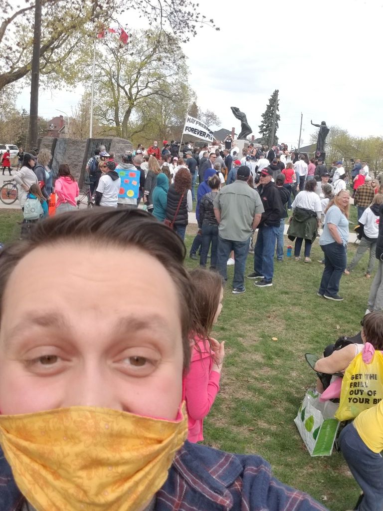 This was fun and a great event. It can be lonely thinking that there is no one around you who thinks similarly about lockdowns. It is also unfortunate that there is so much likely false medical and scientific information being spread around at these protests. There is no need to deny that COVID is real or even deny that lockdowns might mitigate the spread of COVID in order to oppose lockdowns. While I recognize that a speed limit on the 401 of five kilometers-per-hour would likely reduce highway traffic deaths, I don’t think that we ought to reduce the speed limit. I accept, like almost everyone does, that there will be some increased number of deaths in exchange for other things we value such as getting to work, seeing family, and getting to your place of worship. I dream that history will see the anti-lockdowners as sort of anti-authoritarian protestors (although given what we’re taught about the October Crisis, I’m not so hopeful). But if the message is mixed in with anti-science rhetoric, I don’t know that history will look on these protestors as such. More than anything, I hope that lockdowns will end and I pray that events like these do something to further that cause. While things are getting worse and feeling hopeless, an event like this has given me hope.